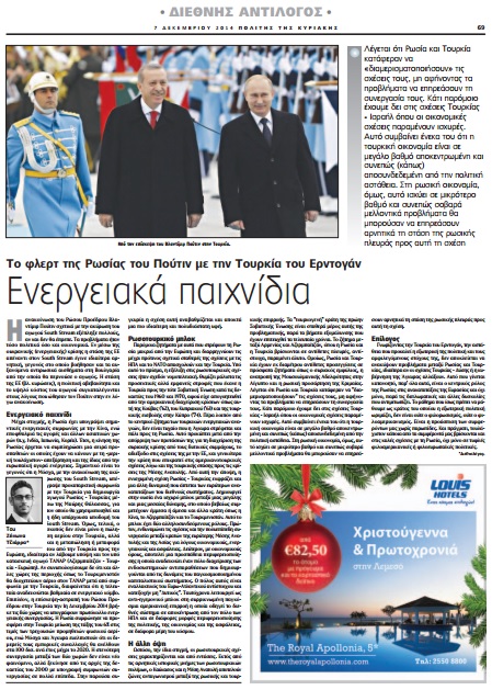 Το πιο κάτω κείμενο δημοσιεύτηκε στην “Καθημερινή” Κύπρου, στο “Φιλελεύθερο” Κύπρου, και “ΒΗΜΑ” Ελλάδος, και αποτελεί απόσπασμα από ανάλυση μου που δημοσιεύτηκε προηγουμένως στο Strategy International.